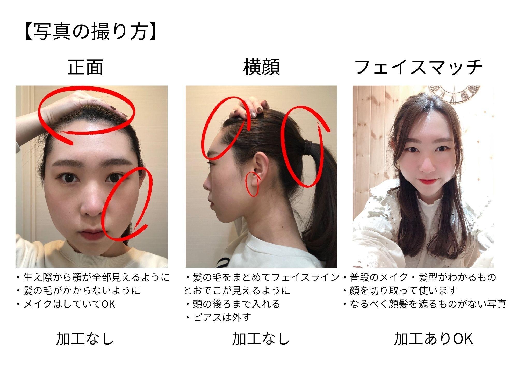 診断はノーメイクで行うので化粧を施さずにお越し頂くようお願い致します。クレンジングはご用意しておりますので日焼け止めやポイント(眉毛)はして頂いても大丈夫です。カラーコンタクト(ディファインを含)は外して頂きます。感染症対策のためコンタクトケースと液はご持参ください。
