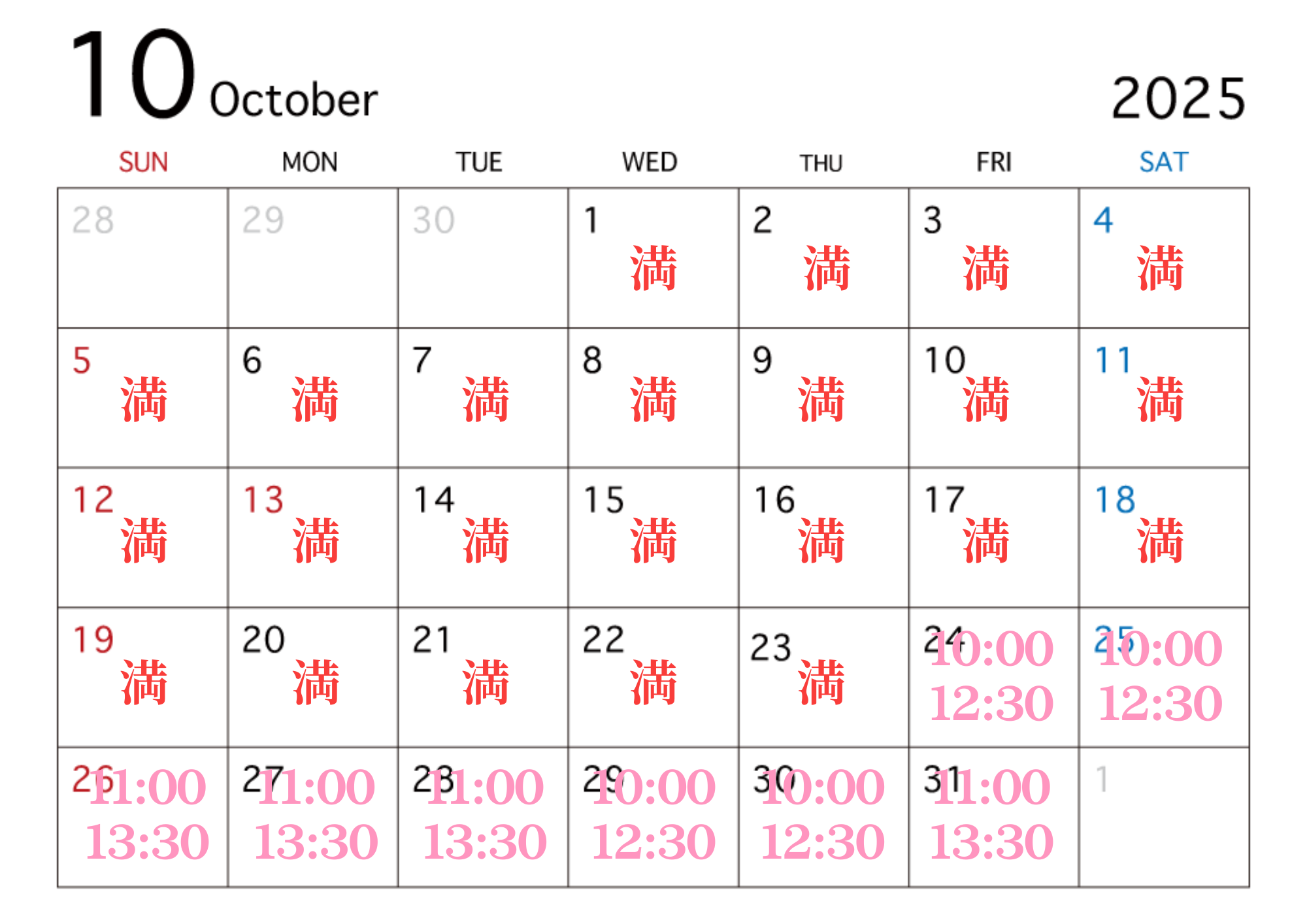 下記予約カレンダーより第1希望・第2希望のお日にちをお選び頂きLINEにて送信ください。
