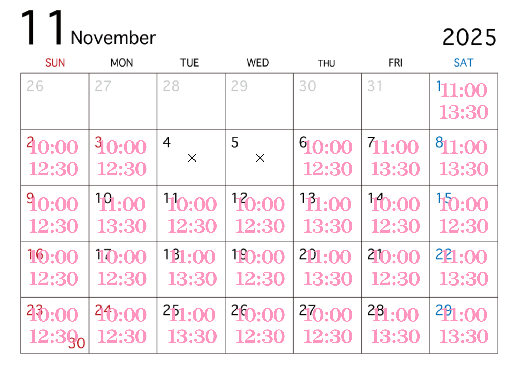 細かい時間帯のご希望はLINEにてご相談させて頂きます。